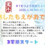 - 校長だより#あしたもえがおで 21号を発行しました。冬休み明け、子どもたちは元気に学校を再開しました。小学部では、凧揚げや羽つき、すごろくなどの正月遊びを楽しんでおり、友達と活動する楽しさを感じています。1年生は校長室に「獅子舞」として訪れ、校長と教頭も「ガブリ!」と体験 […]
