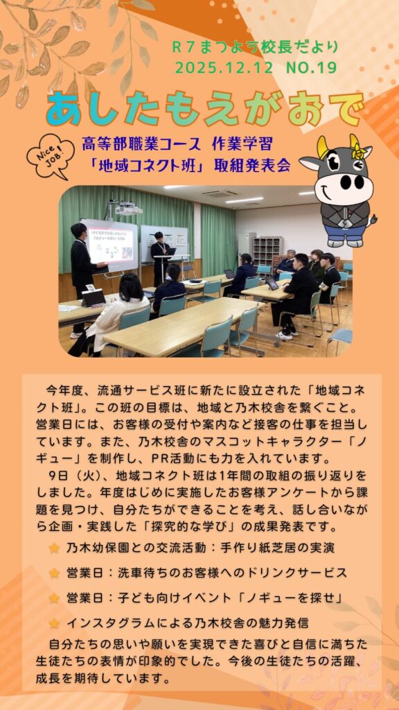 4. 校長だより#あしたもえがおで 19号を発行しました。