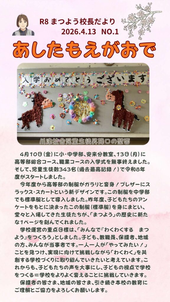 校長だより#あしたもえがおで2026年No.1、No2を発行しました。